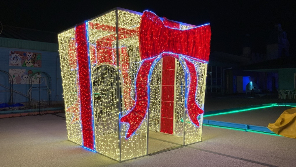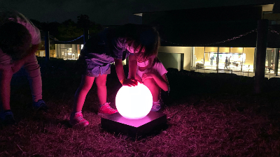 子どもたちが書いた可愛らしい絵やメッセージなどをLEDライトで灯して展示。
